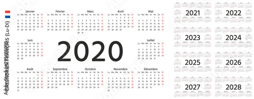 Source: https://stock.adobe.com/images/french-calendar-2020-2021-2022-2023-2024-2025-2026-2027-2028-years-vector-week-starts-monday-france-calendar-wall-template-yearly-organizer-in-simple-design-horizontal-orientation/295685088